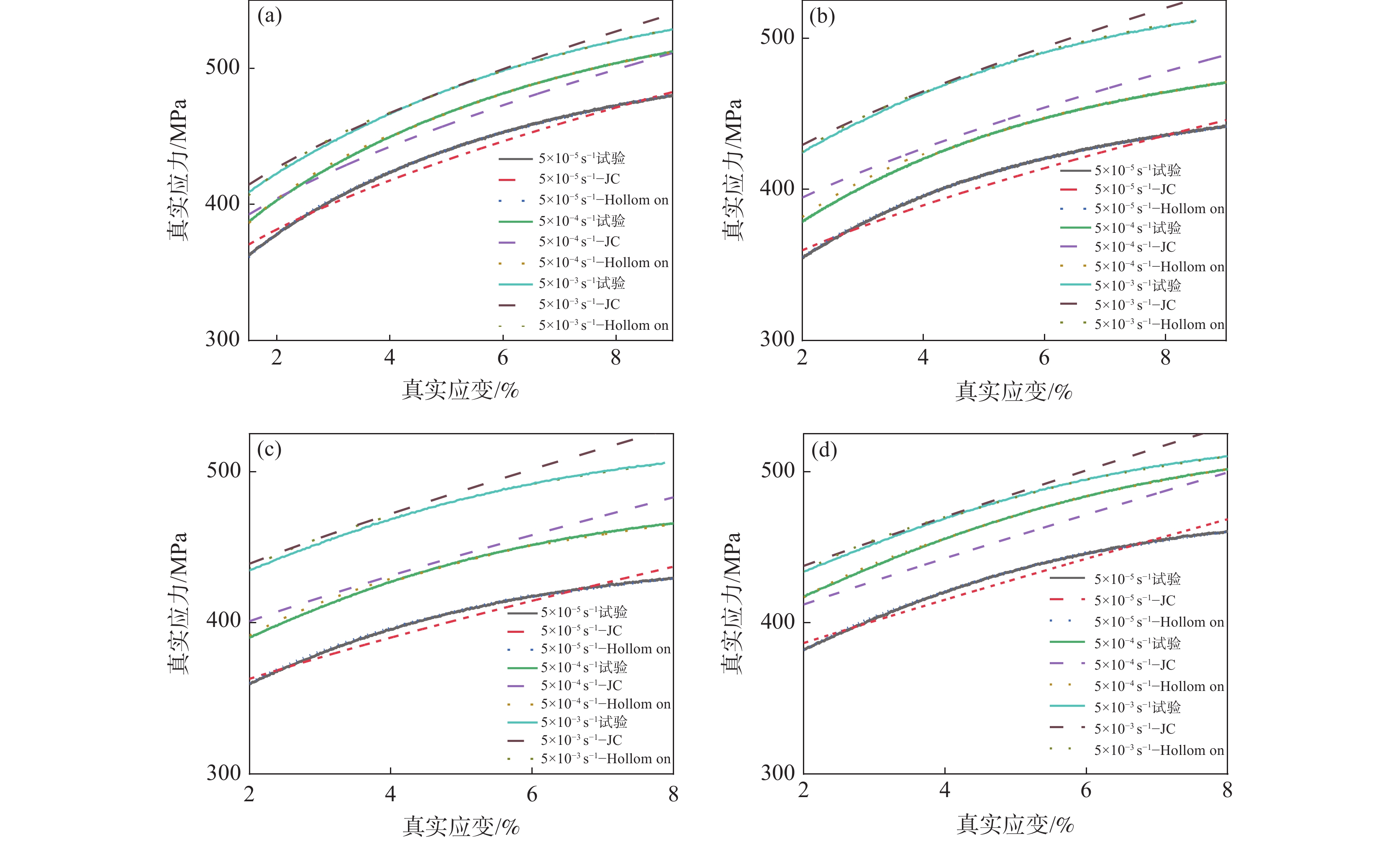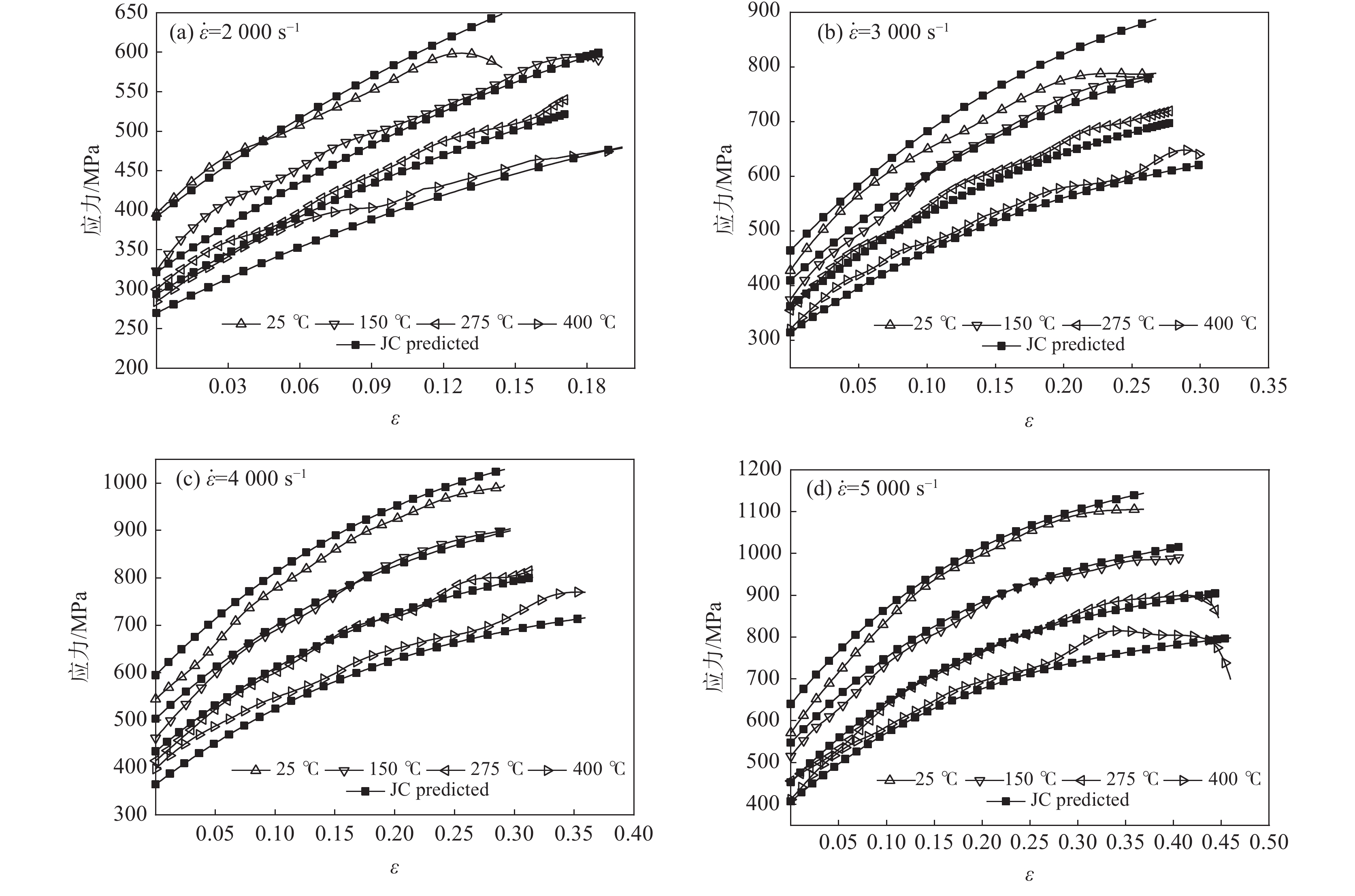 利用UTM5305萬能試驗機(jī)和剖分式 Hopkinson 壓桿裝置,對022Cr18Ni14Mo2不銹鋼進(jìn)行了準(zhǔn)靜態(tài)及動態(tài)下的壓縮試驗研究,探討了其應(yīng)變硬化特征及流動應(yīng)力對應(yīng)變率的依賴程度,并結(jié)合應(yīng)變強(qiáng)化指數(shù)$ n $和應(yīng)變率敏感性系數(shù)$ \beta $兩個參量進(jìn)行定量分析。依據(jù)上述分析結(jié)果,對傳統(tǒng)的J-C本構(gòu)模型進(jìn)行修正,構(gòu)建了一種新型的本構(gòu)模型。借助試驗數(shù)據(jù)對修正后的本構(gòu)模型進(jìn)行參數(shù)識別,將模型預(yù)測值與試驗值進(jìn)行對比分析,運(yùn)用本構(gòu)模型的相關(guān)系數(shù)(R)和平均相對誤差(AARE)兩個參量對其評價。結(jié)果表明:該試樣具有明顯應(yīng)變硬化特性和顯著的應(yīng)變率敏感性,應(yīng)變強(qiáng)化指數(shù)受應(yīng)變、應(yīng)變率的支配,應(yīng)變率敏感性系數(shù)隨應(yīng)變率的增加而增加,且增加的幅度逐漸減小。修正后本構(gòu)模型的相關(guān)系數(shù)(R)為0.9896,平均相對誤差(AARE)為3.29%,能夠較好地描述試樣高溫、高應(yīng)變率下的流變行為。