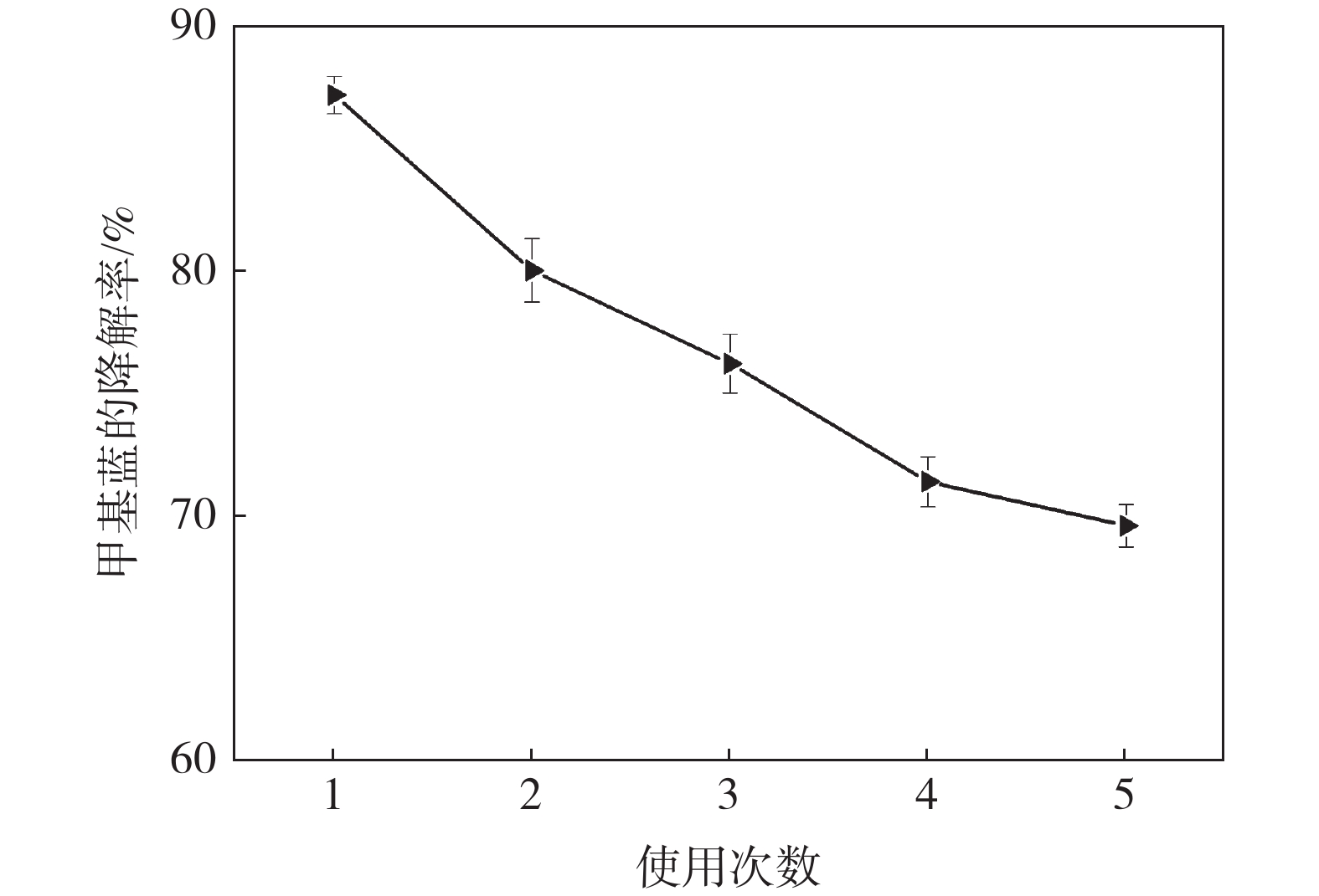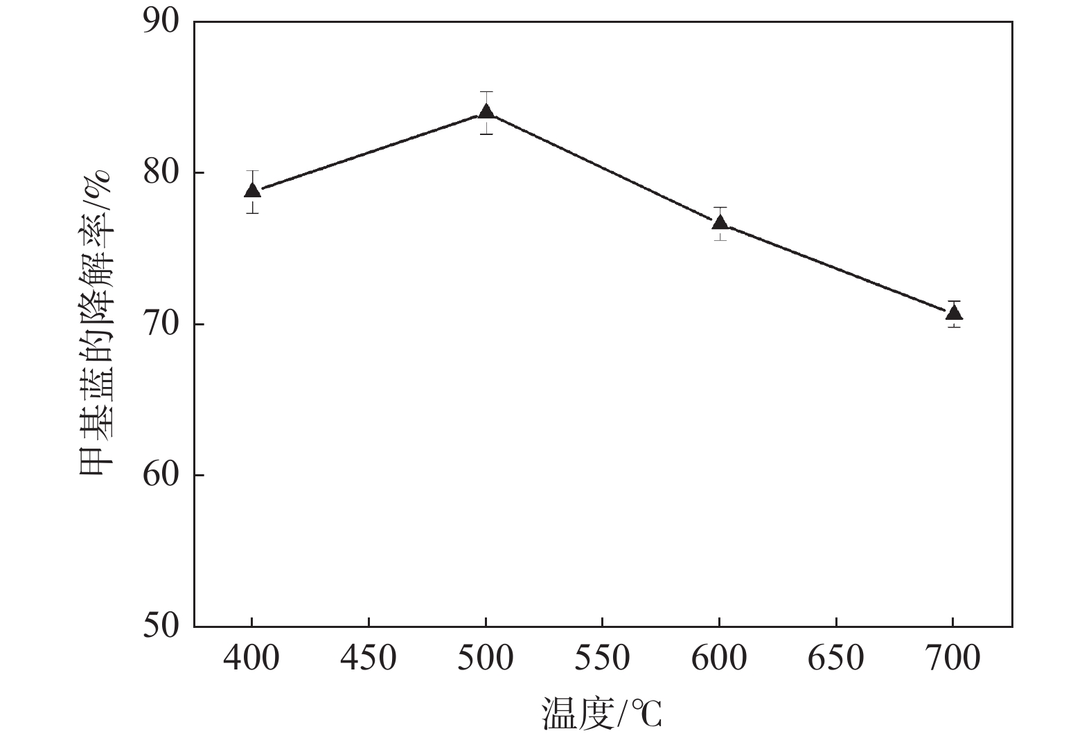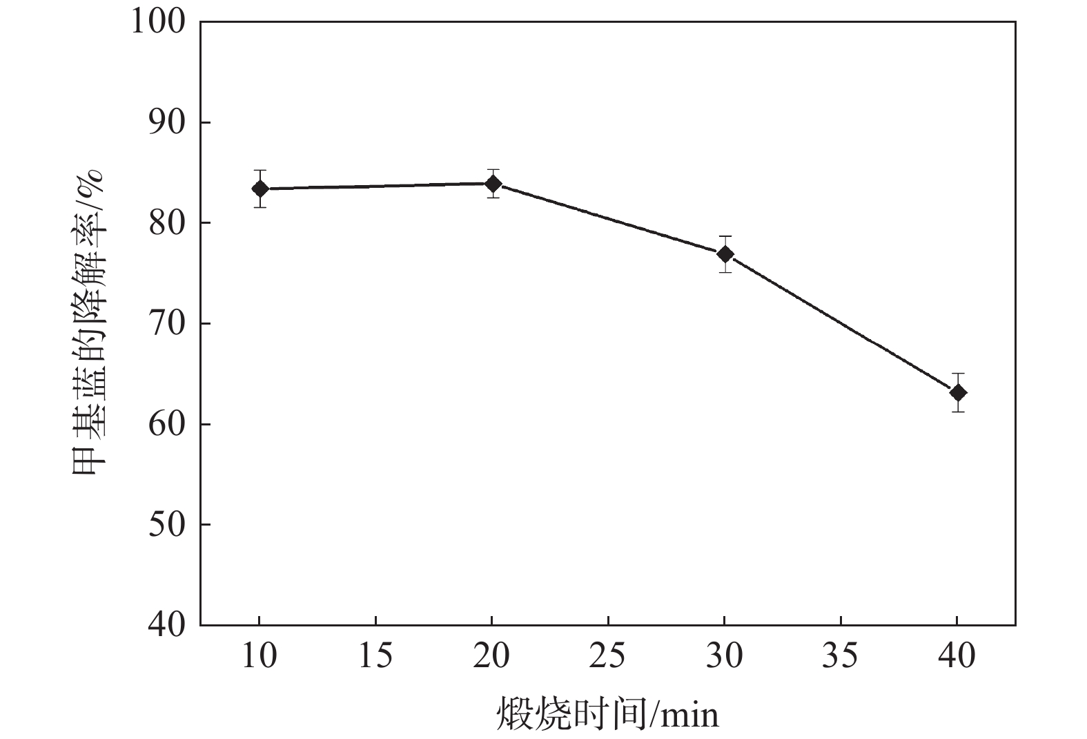 光催化降解已成為污水處理領(lǐng)域發(fā)展最快的方法。為改善TiO2的光催化性能,采用溶膠-凝膠法制備石墨烯(GN)/TiO2復(fù)合材料,利用XRD、SEM對樣品的微觀結(jié)構(gòu)進(jìn)行表征,研究制備過程中煅燒溫度、煅燒時間以及石墨烯含量對GN/TiO2復(fù)合材料光催化性能的影響。結(jié)果表明:所制備TiO2為球狀形貌,粒徑為70~200 nm,分布在石墨烯的片層和邊緣。當(dāng)煅燒溫度為500 ℃,煅燒時間為20 min,石墨烯含量為5%時對甲基藍(lán)(MB)的光催化降解率最高,為87.21%。此外,研究了GN/TiO2復(fù)合材料對甲基藍(lán)光催化降解的重復(fù)利用率,并探討了光催化機(jī)理,結(jié)果表明重復(fù)使用5次后,對甲基藍(lán)的降解率降低了17.64個百分點。
