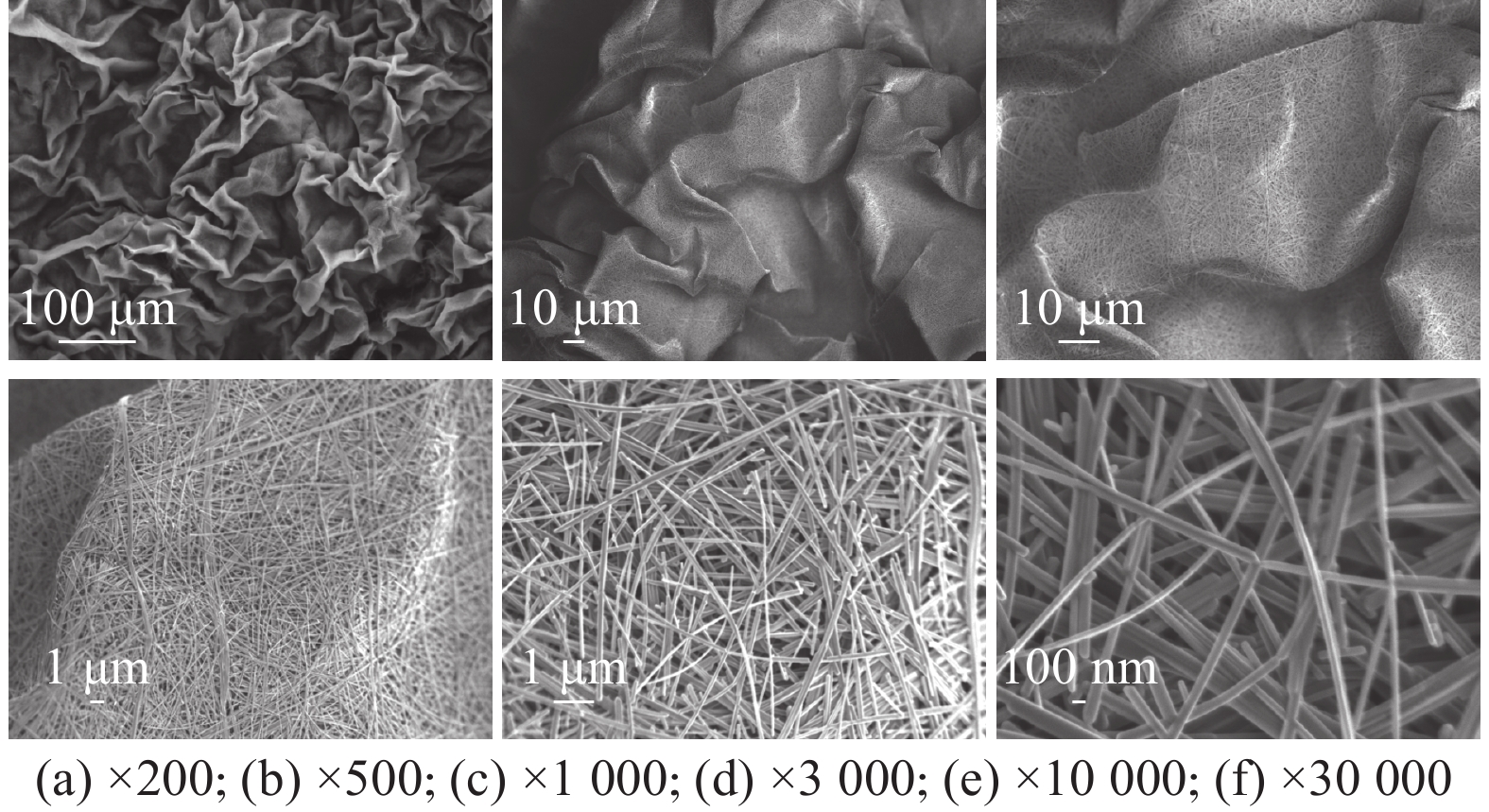 針對現(xiàn)有五氧化二釩納米材料特別是納米纖維布制備工藝復(fù)雜、成本高和效率低等問題,提供了一種高效制備五氧化二釩納米纖維布的方法:水熱反應(yīng)一步法,并初步研究了相關(guān)機(jī)理。經(jīng)產(chǎn)品品質(zhì)和經(jīng)濟(jì)性綜合考量,優(yōu)化的水熱反應(yīng)制備條件如下:溫度為180~200 ℃,時間為18~24 h,體系中鹽酸質(zhì)量濃度為1%~3%,釩源偏釩酸銨質(zhì)量濃度為1%~3%。所得五氧化二釩納米纖維布厚度在0.1~1 mm,纖維直徑為50~100 nm。具有良好的柔韌性、結(jié)構(gòu)均一性,且褶皺程度可調(diào)。