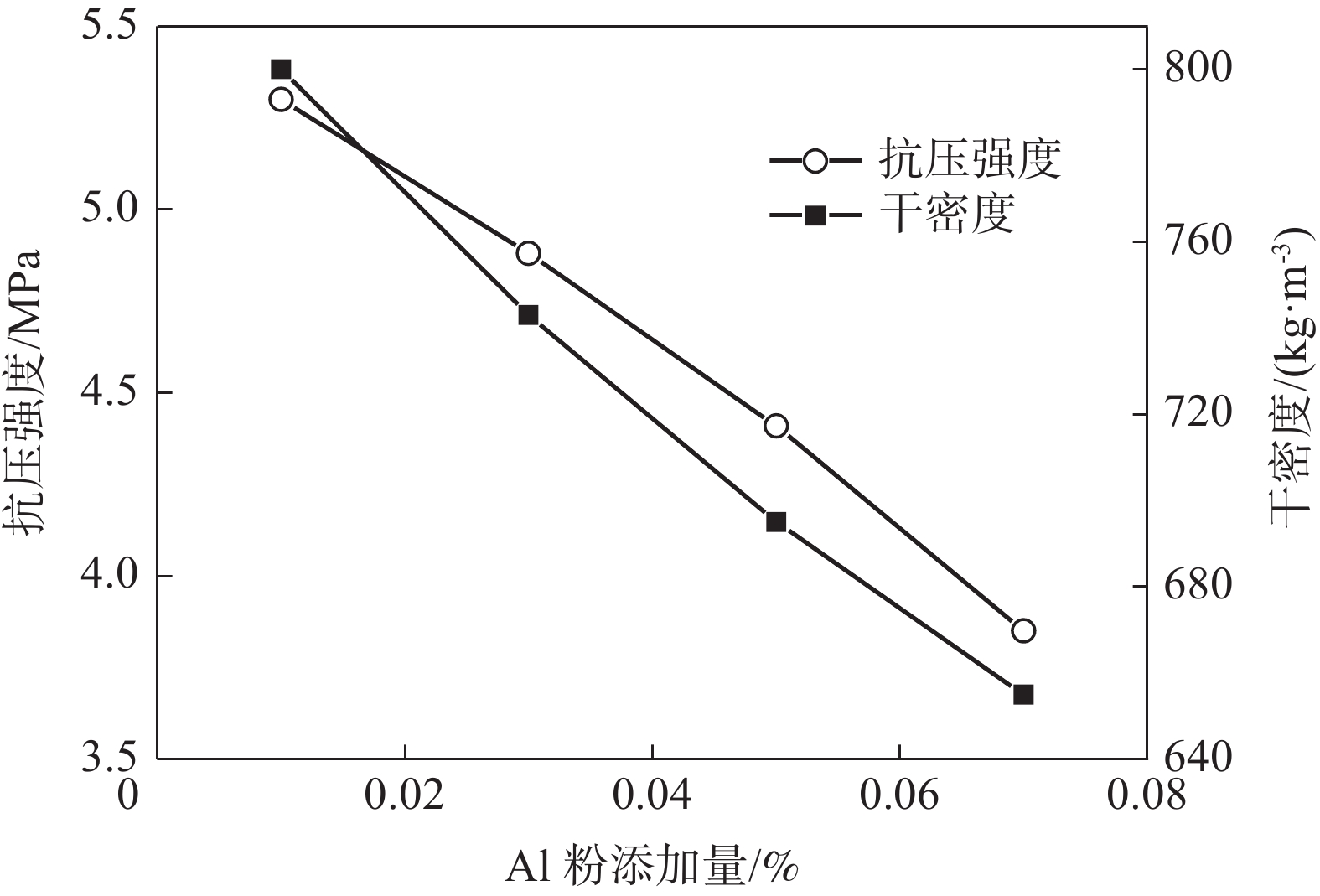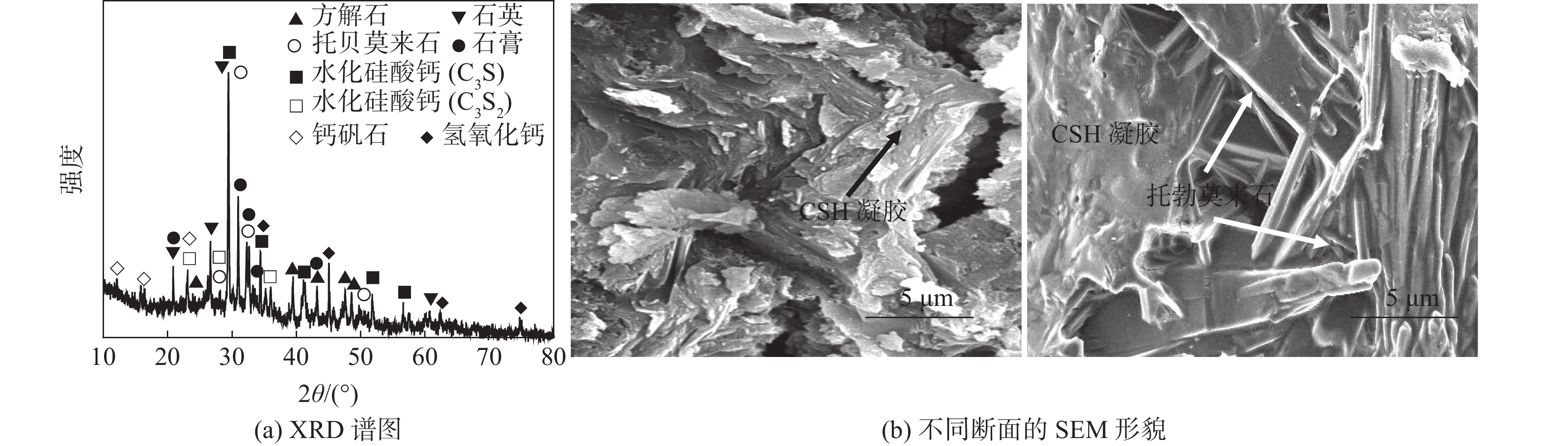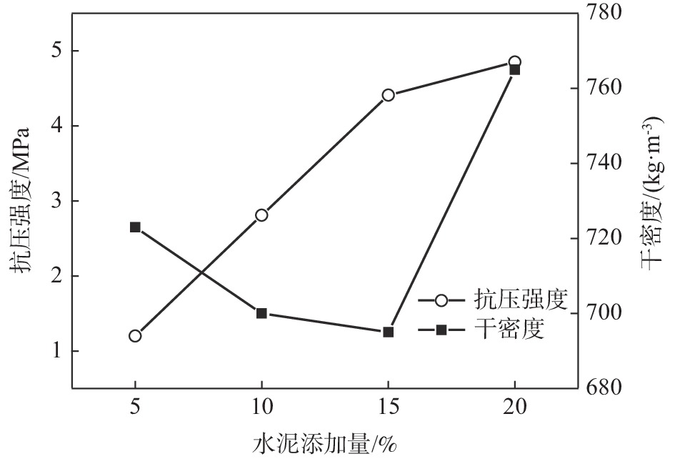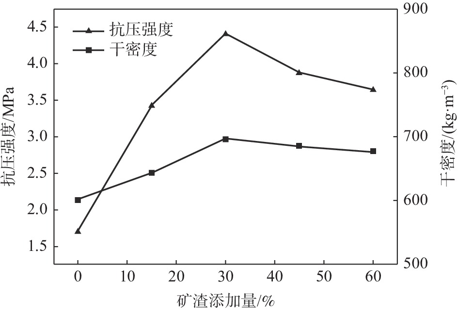 以承德某釩鈦磁鐵礦尾礦為主要原料,采用免蒸壓的方法,制備了一種性能優(yōu)良的加氣混凝土砌塊,研究了配方組成對樣品干密度與抗壓強(qiáng)度的影響。結(jié)果表明:添加水泥與石灰使樣品的抗壓強(qiáng)度先增大后減小,干密度先減小后增大,添加礦渣可提高樣品的抗壓強(qiáng)度與干密度,添加Al粉造成樣品的抗壓強(qiáng)度與干密度下降。采用最佳配方(釩鈦磁鐵礦尾礦∶礦渣∶生石灰∶水泥∶石膏=6∶ 6∶4∶3∶1,鋁粉添加量為0.05%)可制備出抗壓強(qiáng)度為4.41 MPa,干密度為695 kg/m3的加氣混凝土砌塊。樣品經(jīng)28 d養(yǎng)護(hù)后,生成了托勃莫來石與水化硅酸鈣等水化產(chǎn)物。樣品孔隙結(jié)構(gòu)發(fā)達(dá),大量結(jié)晶良好的葉片狀及纖維狀的托勃莫來石與CSH相互交織,形成典型的“橋連”結(jié)構(gòu),從而賦予樣品較低的導(dǎo)熱系數(shù)、優(yōu)良的耐熱性及環(huán)境安全性。為高效利用承德地區(qū)的釩鈦磁鐵礦尾礦提供了依據(jù)。
