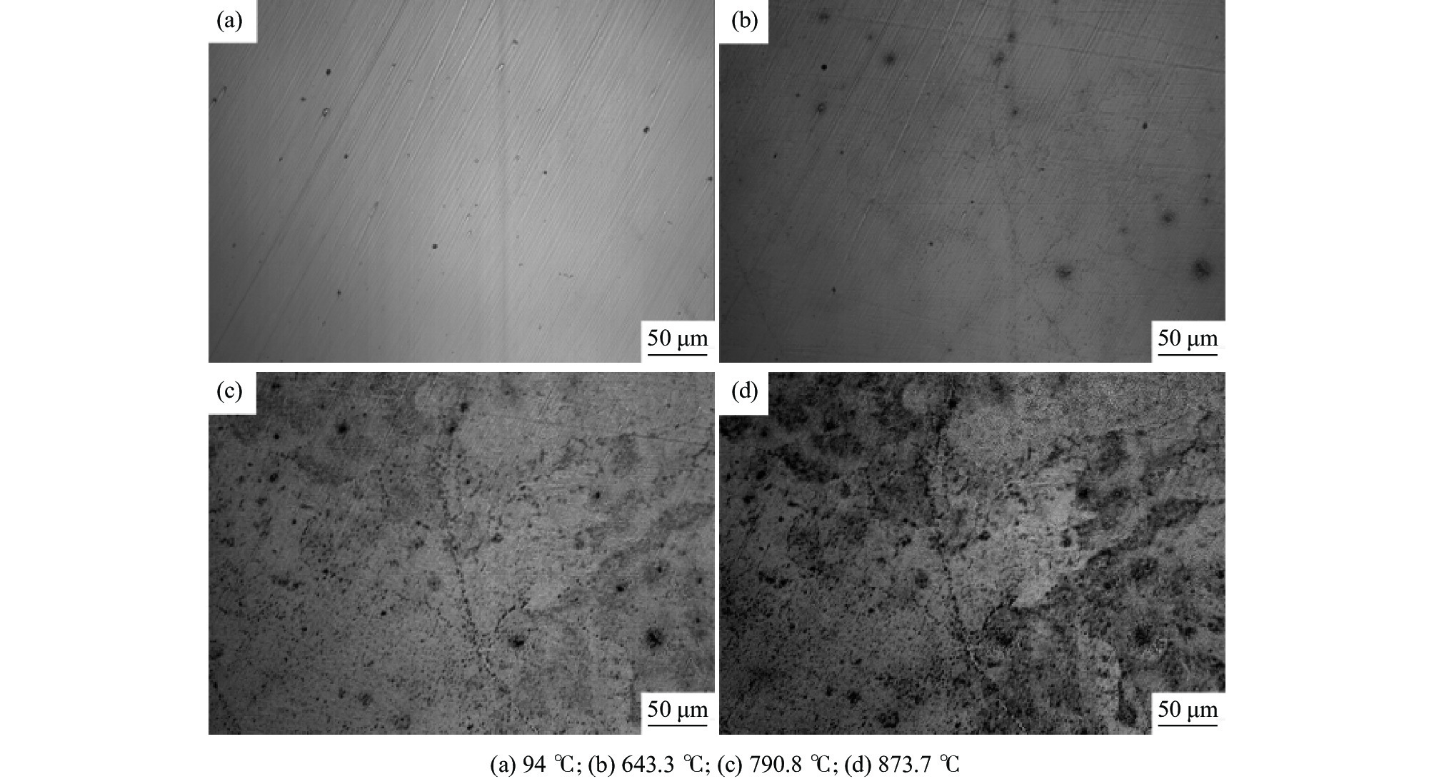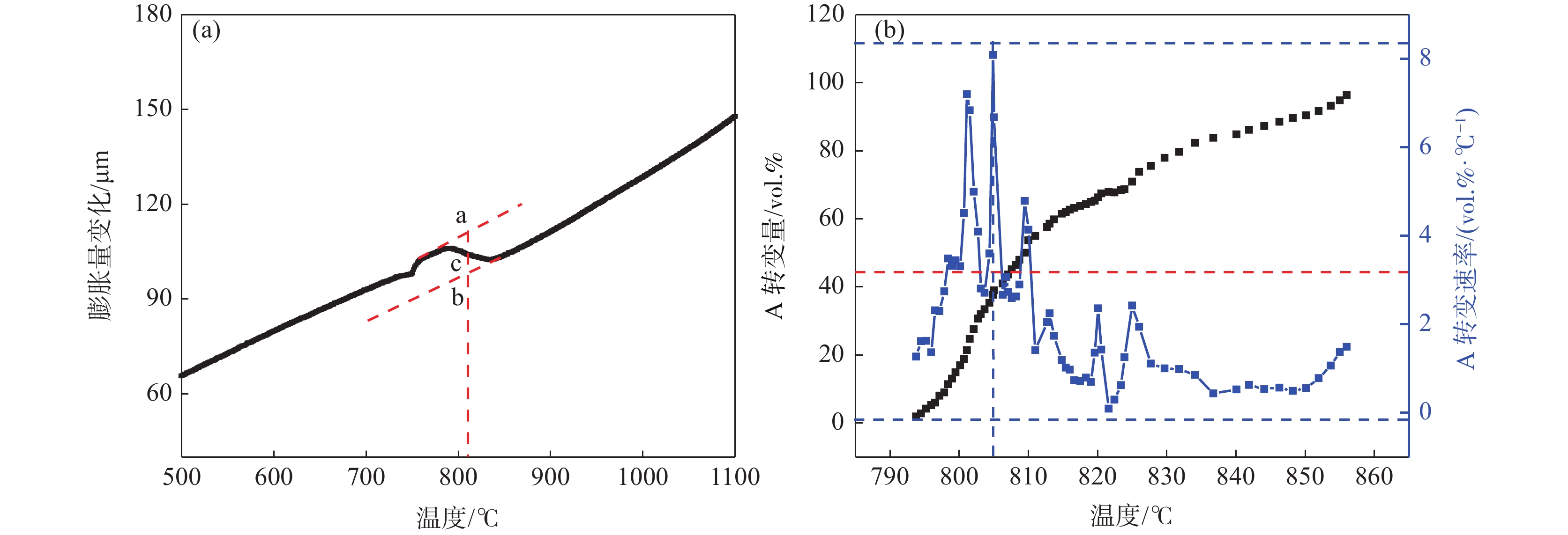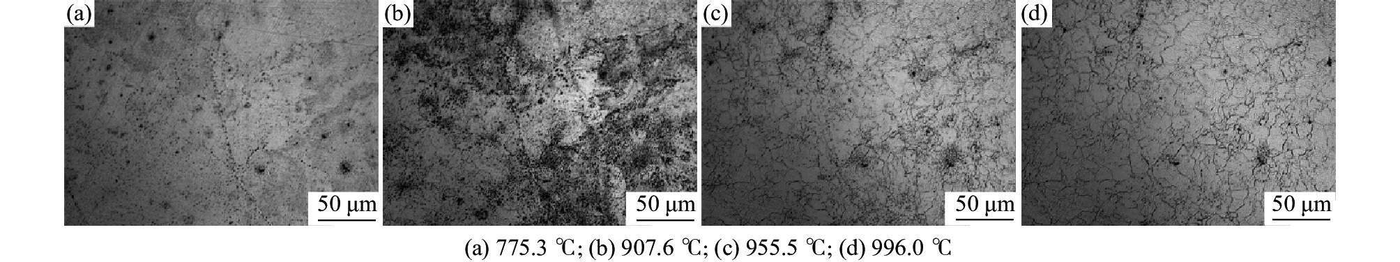 利用DIL805A熱膨脹儀記錄了鑄態(tài)60Si2Mn鋼在不同的加熱速率下(0.2、1、3、10、50 ℃/s)的線膨脹系數(shù),獲得了各自的熱膨脹曲線和奧氏體體積轉(zhuǎn)變分?jǐn)?shù)曲線,研究了加熱速率對奧氏體化的影響。采用高溫金相顯微鏡對該鋼在連續(xù)加熱過程中的奧氏體轉(zhuǎn)變過程進(jìn)行了觀察分析。結(jié)果表明:60Si2Mn鋼在連續(xù)加熱過程中的奧氏體轉(zhuǎn)變可分為三個階段:珠光體向奧氏體的轉(zhuǎn)變、(Mn,Fe)3C向奧氏體中的溶解和奧氏體的成分均勻化。隨著加熱速率提高,相變臨界溫度提高,相變速率提高。通過高溫金相可以觀察到,在連續(xù)加熱過程中,鑄態(tài)60Si2Mn鋼的A轉(zhuǎn)變是一個形核和長大交替進(jìn)行的過程,并且由于Si元素含量的不同,導(dǎo)致這個過程是不連續(xù)的。