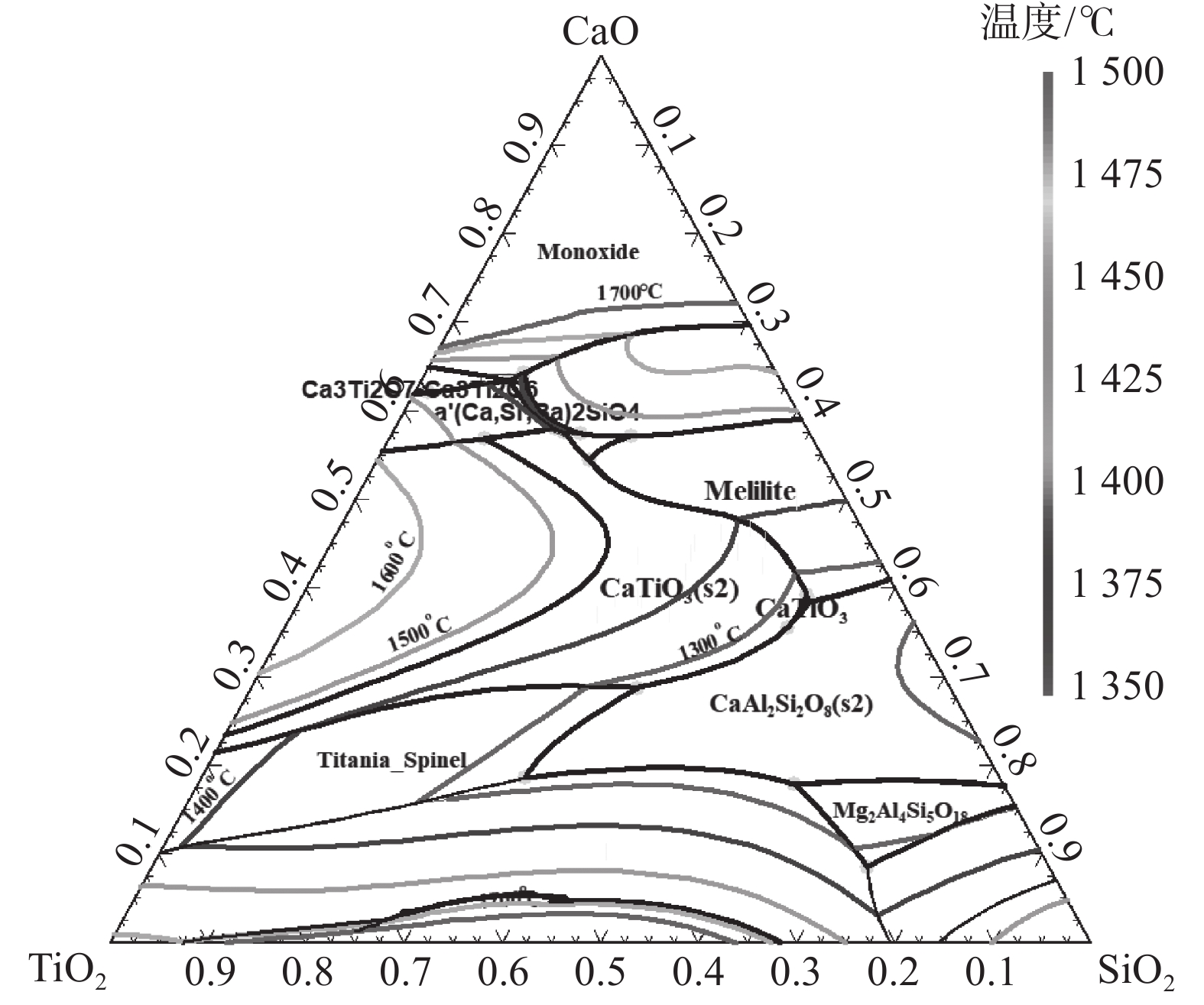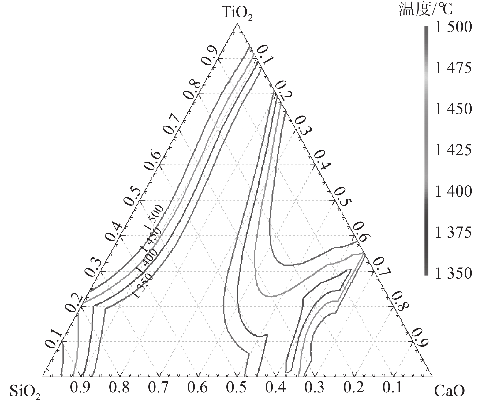 隨著國內(nèi)各鋼鐵企業(yè)高爐配加經(jīng)濟(jì)性較高的高鋁原料的增加,爐渣中Al2O3含量增加,渣鐵流動性變差,給高爐冶煉帶來一系列問題。以CaO-SiO2-Al2O3-MgO-TiO2五元渣系為研究對象,通過相圖理論計算結(jié)合試驗研究和爐渣結(jié)構(gòu)分析,研究了高鋁渣中不同TiO2含量(低鈦:5%,中鈦:15%,高鈦:25%)對高鋁高爐渣黏度、熔化性溫度的影響,并通過爐渣結(jié)構(gòu)研究解析了影響爐渣物化性能的原因。結(jié)果表明:固定堿度R2為1.25,TiO2質(zhì)量分?jǐn)?shù)增加至25%過程中,爐渣熔化溫度先下降后增高,當(dāng)TiO2質(zhì)量分?jǐn)?shù)為7%時,爐渣液相析出相由斜長石類的鈣鋁硅酸鹽(Ca2Al2SiO7)轉(zhuǎn)變?yōu)楦呷埸c鈦酸鈣(CaTiO3),其熔點為1975 ℃,爐渣熔化溫度增加;TiO2含量由低鈦5%增加至高鈦25%時,爐渣黏度和熔化性溫度均降低。溫度越高,爐渣流動性越好,渣中TiO2以[TiO6]8-八面體結(jié)構(gòu)存在,可使渣中復(fù)雜硅氧網(wǎng)狀結(jié)構(gòu)解體;TiO2含量由5%增加至25%時,爐渣中復(fù)雜結(jié)構(gòu)單元Si(Q2 + Q3)的含量降低,簡單結(jié)構(gòu)單元Si(Q0 + Q1)的含量升高,Si(Q2 + Q3)/Si (Q0 + Q1)降低,爐渣結(jié)構(gòu)簡單化,即爐渣中無論是在低鈦、中鈦、還是高鈦含量,TiO2在爐渣中起爐渣修飾子作用,對降低爐渣黏度、改善爐渣流動性有積極作用,可作為高鋁冶煉調(diào)控手段之一。