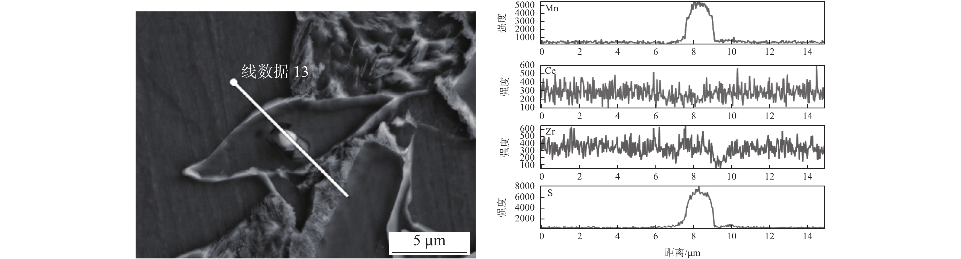 研究了FH40高強(qiáng)船板鋼經(jīng)稀土合金化處理后夾雜物誘發(fā)鐵素體的變化行為,利用掃描電子顯微鏡(SEM)和能量衍射譜(EDS)等手段觀察分析了鋼中稀土夾雜物的形貌特征以及誘發(fā)形成IAF的行為機(jī)制。研究結(jié)果表明:經(jīng)Ce或Ce-Zr復(fù)合處理后,稀土復(fù)合夾雜物形狀得到球化,且均能誘發(fā)針狀鐵素體形成;單獨Ce處理形成的Al-Ce-O+MnS夾雜物誘導(dǎo)針狀鐵素體行為可用貧Mn區(qū)機(jī)制和惰性基底機(jī)理解釋,而Ce-Zr復(fù)合處理形成的Ce-Zr-O+MnS夾雜物誘導(dǎo)針狀鐵素體行為只能用貧錳區(qū)機(jī)制解釋。