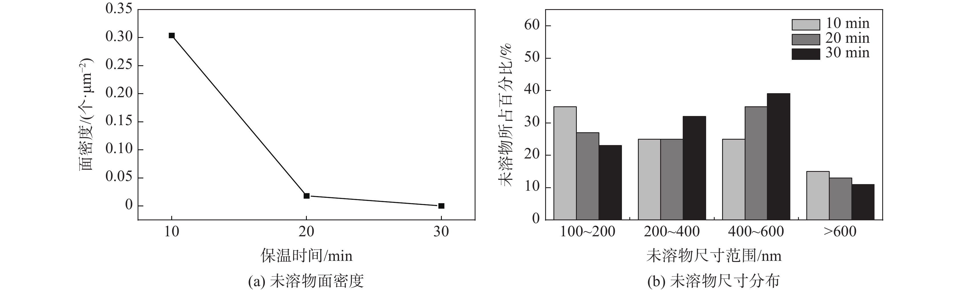 借助OM、激光共聚焦顯微鏡、質(zhì)譜儀和電解萃取等設(shè)備和方法,研究了添加微量稀土La(質(zhì)量分?jǐn)?shù)0.0011%)的取向硅鋼在軋制前采用不同加熱保溫時間對抑制劑固溶行為的影響。結(jié)果表明:當(dāng)稀土取向硅鋼在1250 ℃分別保溫10、20、30 min后,試驗鋼晶粒尺寸隨保溫時間延長有先快后慢的長大趨勢;三種抑制劑元素Mn、Cu和Al均發(fā)生固溶,保溫時間對Mn和Cu兩種元素的固溶影響明顯,固溶量分別由69.8%和43.7%增加至84.2%和85.2%;隨著保溫時間的延長,稀土取向硅鋼中抑制劑的小尺寸未溶物逐漸減少直至消失,較大尺寸未溶物(300~600 nm)逐漸轉(zhuǎn)變?yōu)樾〕叽缥慈芪镏鸩饺苋牖w中,數(shù)量減少且未溶物的類型由復(fù)雜逐漸轉(zhuǎn)變?yōu)閱我弧?/span>