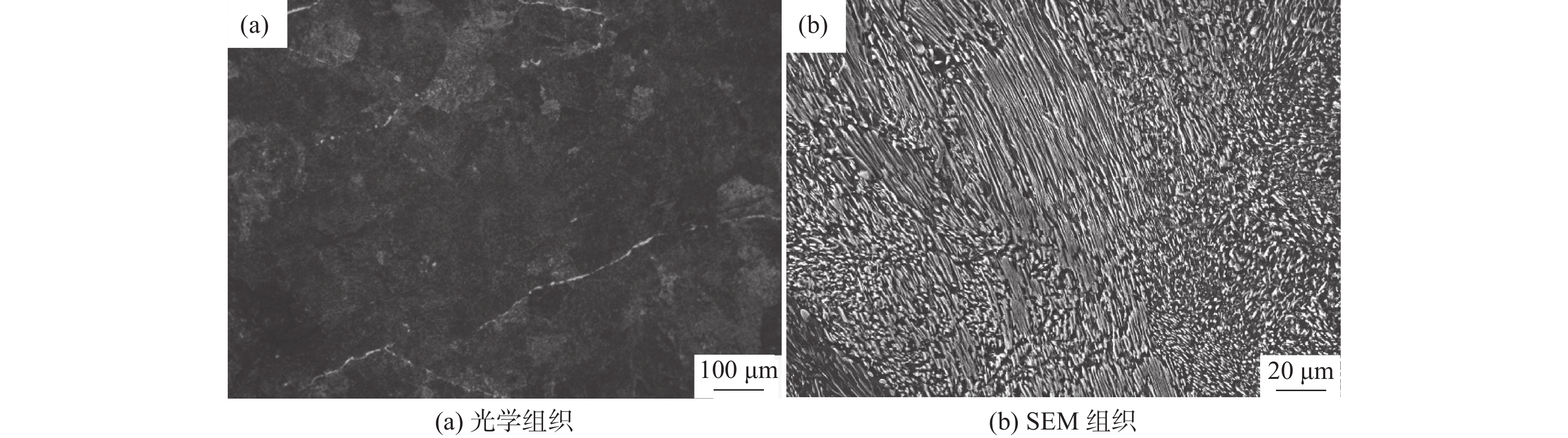 采用單絲MIG焊工藝焊接15 mm厚TC4鈦合金,對母材和焊接接頭的組織、拉伸性能、疲勞性能進(jìn)行分析測試。結(jié)果表明:焊接接頭分為母材、熱影響區(qū)和焊縫區(qū)3個部分,其中母材為α+β等軸組織,熱影響區(qū)為α+β和α′馬氏體組成的混合組織,焊縫區(qū)在強(qiáng)烈熱沖擊作用下,晶粒粗化,晶粒內(nèi)為α′馬氏體組織。接頭拉伸試樣斷裂在母材處,斷后延伸率為10.5%。母材和焊接接頭疲勞壽命隨著應(yīng)力水平的增加而減小,在高應(yīng)力水平下,母材疲勞壽命高于母材,低應(yīng)力水平下則相反;母材疲勞源位于試樣表面的劃痕處,接頭疲勞起源于內(nèi)部氣孔處,接頭疲勞擴(kuò)展區(qū)有許多二次裂紋,接頭擴(kuò)展區(qū)疲勞條帶間距小于母材,接頭和母材瞬斷區(qū)都有大量韌窩。