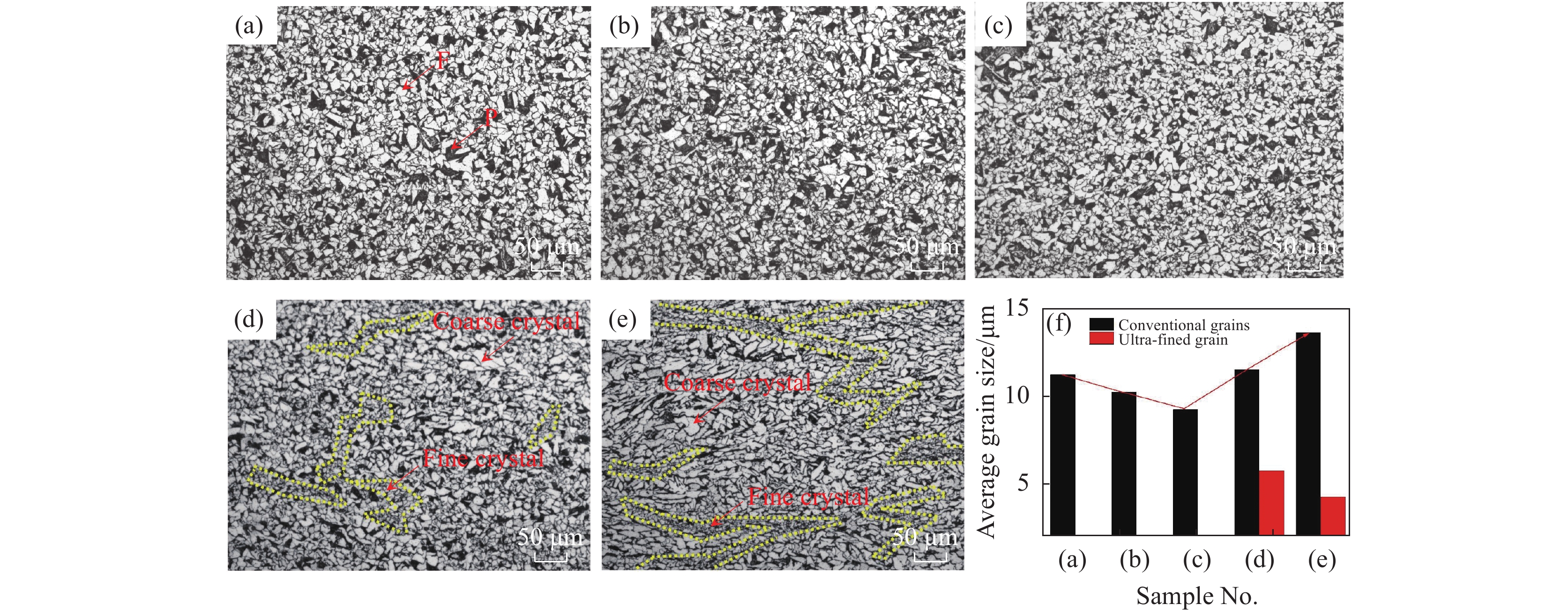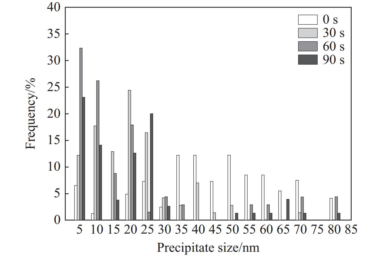采用室溫拉伸、-20 ℃時CVN沖擊、-15 ℃時DWTT落錘撕裂試驗等力學性能測試方法和光學顯微鏡(OM)、掃描電鏡(SEM)、透射電鏡(TEM)等顯微組織分析手段,研究了軋后馳豫時間0、30、60、75 s對薄規格450 MPa級高強鋼微觀組織和力學性能的影響。試驗結果表明,隨著弛豫時間延長,多邊形鐵素體(PF)尺寸逐漸長大、比例逐漸增加,晶粒內部富Nb、Ti納米碳氮化物析出量呈現先增加后減少的趨勢,屈服強度、抗拉強度、斷后伸長率和-20 ℃下的沖擊功和-15 ℃的DWTT呈現先升高后降低的趨勢,屈強比先降低后升高,馳豫時間為60s時能夠獲得較高的強韌性和低屈強比,可滿足工程結構用鋼的技術要求。