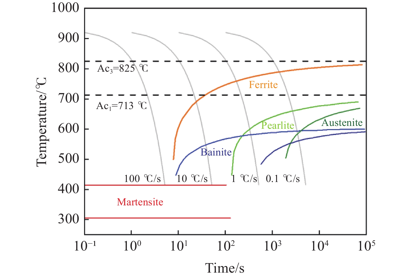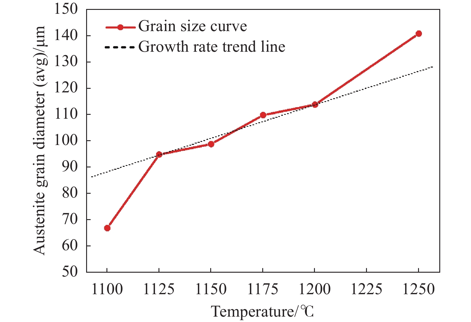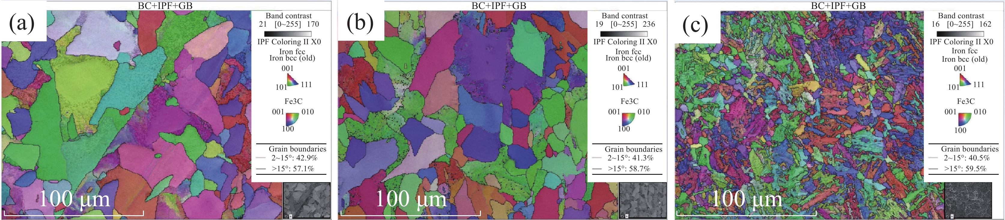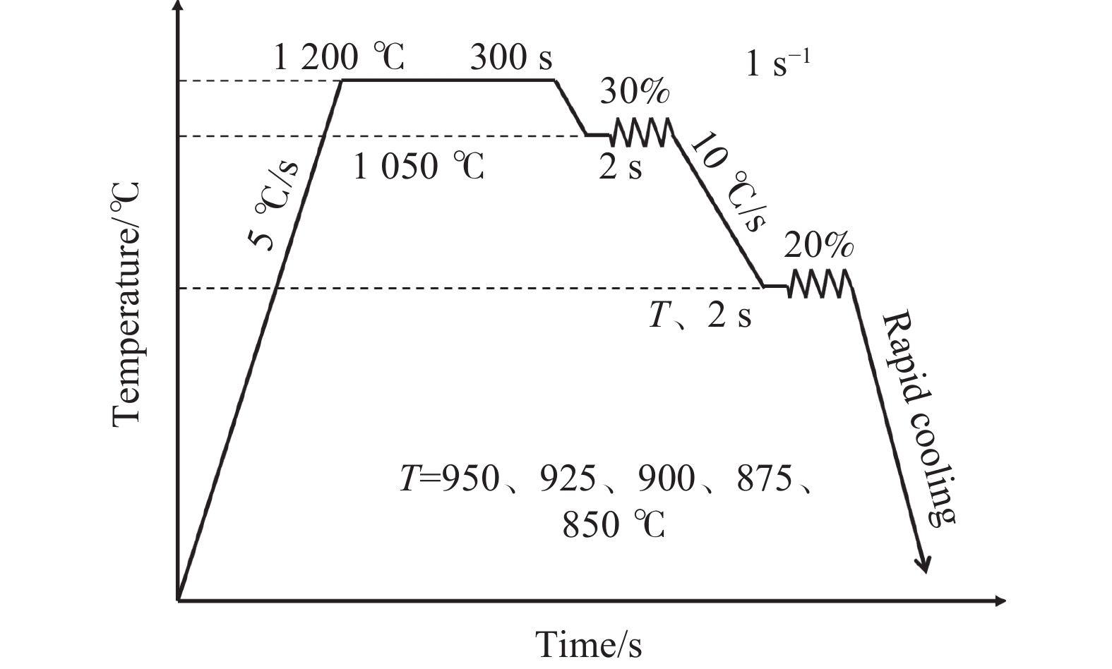 針對E級微合金角鋼,設計了系統性、多方案的模擬試驗,通過分析原奧氏體加熱長大規律、形變奧氏體再結晶、組織相變、第二相粒子析出等內容,闡明了加熱溫度、變形溫度、冷卻速率工藝對組織及性能的影響。結果表明:隨著加熱溫度升高,鑄坯原奧氏體晶粒尺寸呈階段性增長,11251200 ℃溫度區間內長大速率相對較慢。950~850 ℃為奧氏體區,隨著變形溫度降低,鐵素體平均晶粒尺寸由11.2 μm減小到了9.2 μm;當溫度降低至800~750 ℃兩相區后,組織出現混晶,部分鐵素體晶粒長大至13.6 μm。當冷速為2~5 ℃/s時,可獲得均勻的鐵素體+珠光體組織;當冷速達到10 ℃/s時,組織呈現為團簇珠光體+網狀/針狀鐵素體。最后,經低溫生產試制,鐵素體晶粒尺寸細化了約30%,低溫沖擊韌性提高了約20%。