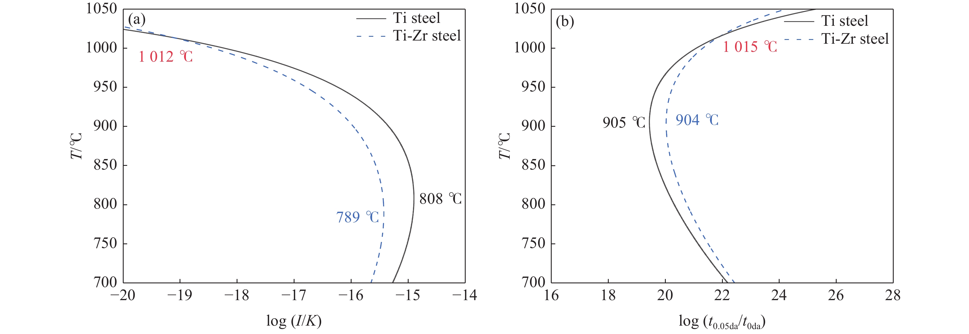 通過兩階段熱機械加工結合直接淬火工藝,系統研究了在950~850 ℃的終軋溫度范圍,Zr對直接淬火Ti微合金化高強度低碳馬氏體鋼組織性能及強化機制的影響。結果表明,隨著終軋溫度的降低,Ti鋼和Ti-Zr鋼的硬度先升高后降低,Ti鋼中的析出物的數量逐漸減少,而Ti-Zr鋼中析出物的數量先增加后減少;終軋溫度875 ℃時Ti鋼的硬度(HV)達到最高值338.8,終軋溫度900 ℃時Ti-Zr鋼的硬度(HV)達到最大值332.2。Zr的加入使Ti微合金鋼中顯微組織的細小化和均勻化程度提高,使原始奧氏體晶粒平均尺寸減小了2.9~6.0 μm,幾何必需位錯密度由1.6×1013 m?2提高到6.6×1013 m?2,馬氏體塊的平均尺寸降低了0.13~0.38 μm。Zr的加入促進了Ti元素在奧氏體中的固溶,使碳氮化物從奧氏體中的形變誘導析出率降低了10%以上。此外,固溶強化和位錯強化是Ti-Zr鋼的主要強化機制,約占總屈服強度的60%。