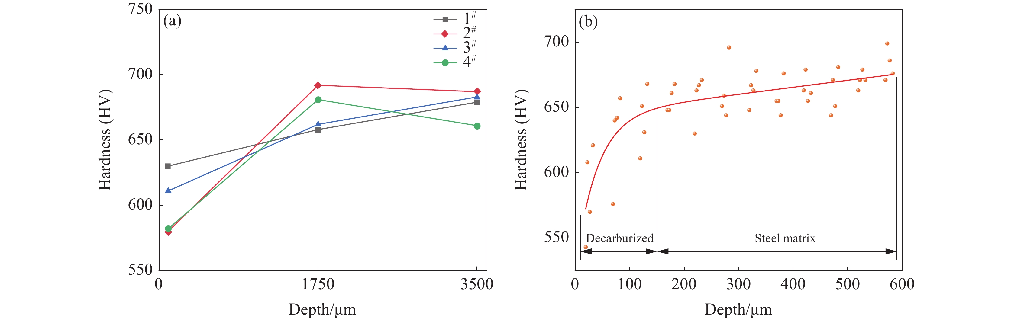 為了量化脫碳層對超高強纜索鋼絲力學性能的影響,系統研究了2100 MPa級V微合金化鍍鋅鋁纜索鋼絲的徑向硬度分布、脫碳層深度及逐層剝離脫碳層后鋼絲的力學性能。結果表明:①鋼絲基體的徑向硬度由表及里呈規律性提高,硬度(HV)最外層為601,心部為678,硬度數據證實鋼絲的實際脫碳層深度可達(150±10) μm;②鋼絲鍍鋅鋁層厚度約為30 μm,鍍鋅鋁層降低鋼絲強度為11.17 MPa,對鋼絲強度影響較小;③逐層剝離脫碳層后,鋼絲基體的強度由2134.04 MPa增至2225.97 MPa,脫碳層使鋼絲強度降低91.93 MPa,剝離140 μm后強度趨于穩定。由數據可知,脫碳層明顯降低了纜索鋼絲的整體強度,故嚴格控制盤條脫碳是開發超高強纜索鋼絲的重要環節。