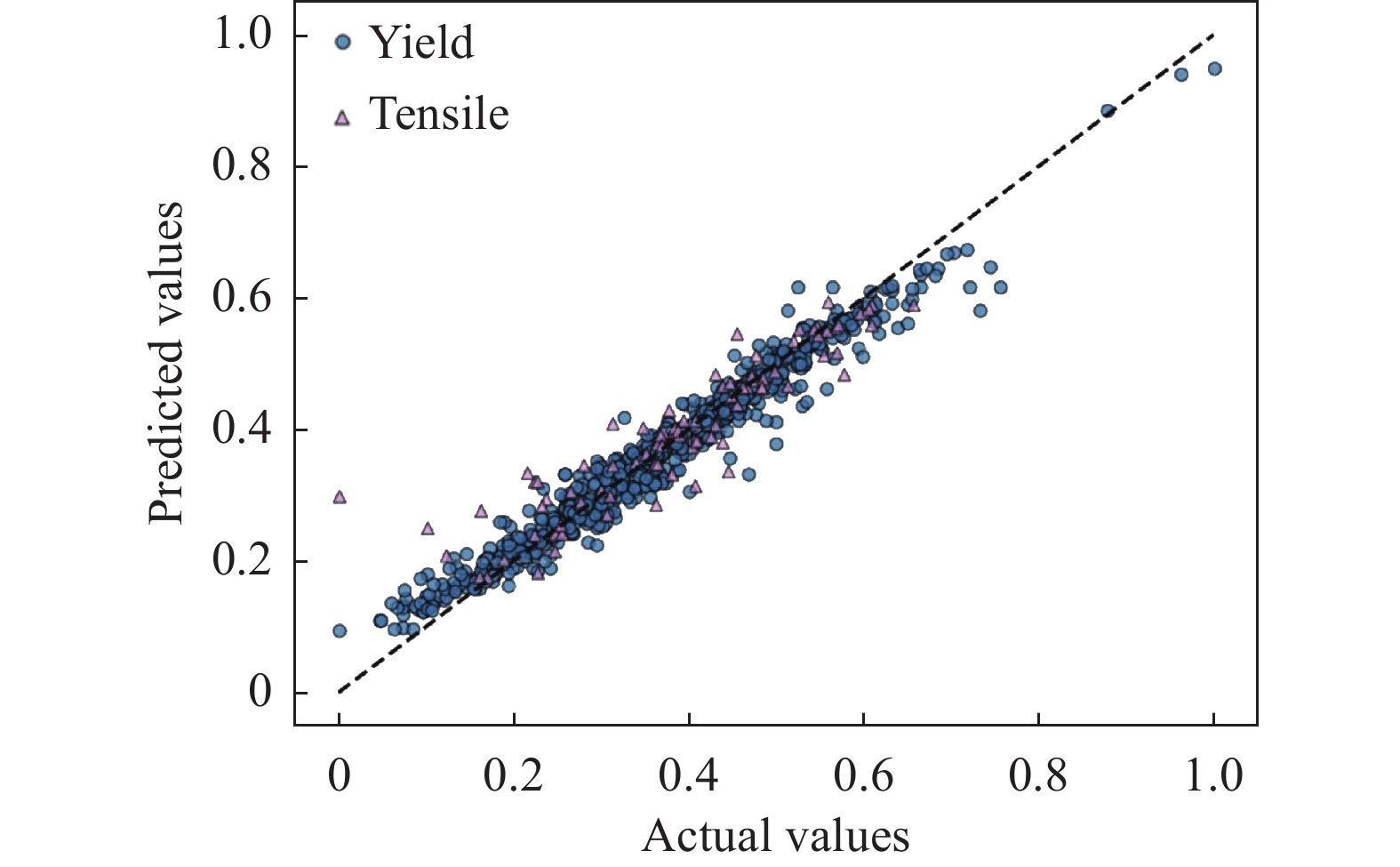 High-temperature tensile tests on P650 high-nitrogen steel had been conducted under 1000-1150 ℃ and strain rates of 0.01-10 s?1, using a Gleeble-3500 thermomechanical simulator. Based on the obtained stress-strain data, a strain-compensated Arrhenius constitutive model and an artificial neural network (ANN) model were developed, with prediction accuracy evaluated by average absolute relative error, root mean square error, and correlation coefficient. Results demonstrated that the prediction by ANN model with a single hidden layer (17 neurons) achieved high-precision nonlinear mapping between input parameters (temperature, strain rate, strain) and flow stress. Besides, the ANN predictions exhibited good agreement with experimental data (r=0.996, EAARE=4.63%, ERMSE=6.721 MPa) compared to the Arrhenius model (r=0.975, EAARE=7.94%, ERMSE=16.032 MPa). This study reveals that artificial neural networks can effectively capture constitutive relationship characteristics of complex thermal deformation behaviors, providing an improved strategy for establishing high-accuracy flow stress prediction models and optimizing material processing technologies.