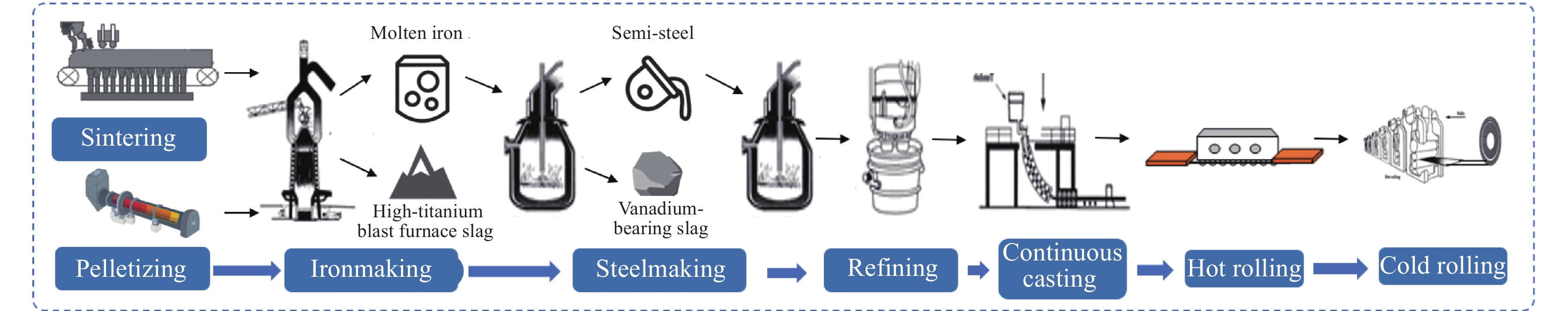 Vanadium-titanium magnetite, as a strategic resource, its efficient smelting is of vital importance to China's steel industry. During the smelting process of vanadium-titanium magnetite, problems such as low recovery rate of titanium in the ore, insufficient intelligence of the process flow, high difficulty in optimizing blast furnace smelting technology, and lack of comprehensive energy intelligent management are faced, which affect its product upgrading and capacity improvement. Digital twin technology can help achieve process optimization, equipment research and development, and intelligent control throughout the entire production process of vanadium-titanium ore steel by building an intelligent system that integrates the virtual and the real. At present, the relevant research is still in the exploratory stage, with few research achievements and a lack of systematicness. For this purpose, the connotation and development history of digital twins were introduced. The research hotspots of digital twins in the production process of vanadium-titanium ore steel were systematically sorted out. The relevant research results and engineering practices were summarized, and the future development trends of digital twin technology were prospected, providing research ideas for subsequent researchers to promote the application of digital twin technology and enhance the utilization of characteristic vanadium-titanium resources and the intelligent manufacturing level of steel in China.