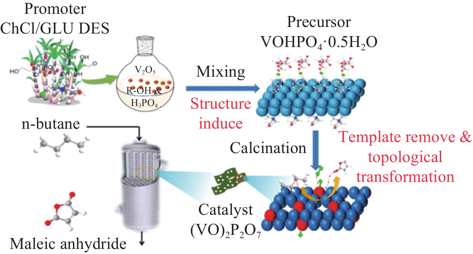 As the core catalyst for maleic anhydride in the n-butane process, vanadium-phosphorus-oxygen (VPO) catalysts, with their low n-butane conversion and maleic anhydride selectivity, can hardly satisfy the industrial demand for the efficient production of maleic anhydride, and therefore the development of high-performance vanadium-phosphorus-oxygen (VPO) catalysts has become a hot spot in research. On this backgroud, we have reviewed in this paper the progress of the preparation of high-efficiency vanadium-phosphorus-oxygen catalysts in recent years, and have discussed particularly on the effects of raw material and solvent selection, preparation method, activation atmosphere, additives and carriers on the catalytic performance. We have found that the factors mentioned above modify mainly the catalysts by altering the catalyst's specific surface area, active crystal surface strength, surface acidity, V4+/V5+ or P/V ratio. These modifications help to expose more active sites, to promote n-butane C-H bond breaking and to induce the oxidation of n-butane to improve the n-butane conversion or maleic anhydride selectivity. Finally, we have summarized and compared the effects of different influencing factors on the catalytic performance of VPO, and have suggested that the addition of additives is the development trend for the preparation of high-performance VPO catalysts. We look forward to the development of additives in the future in terms of the selection of raw materials, the structural design and modification, and the cost.