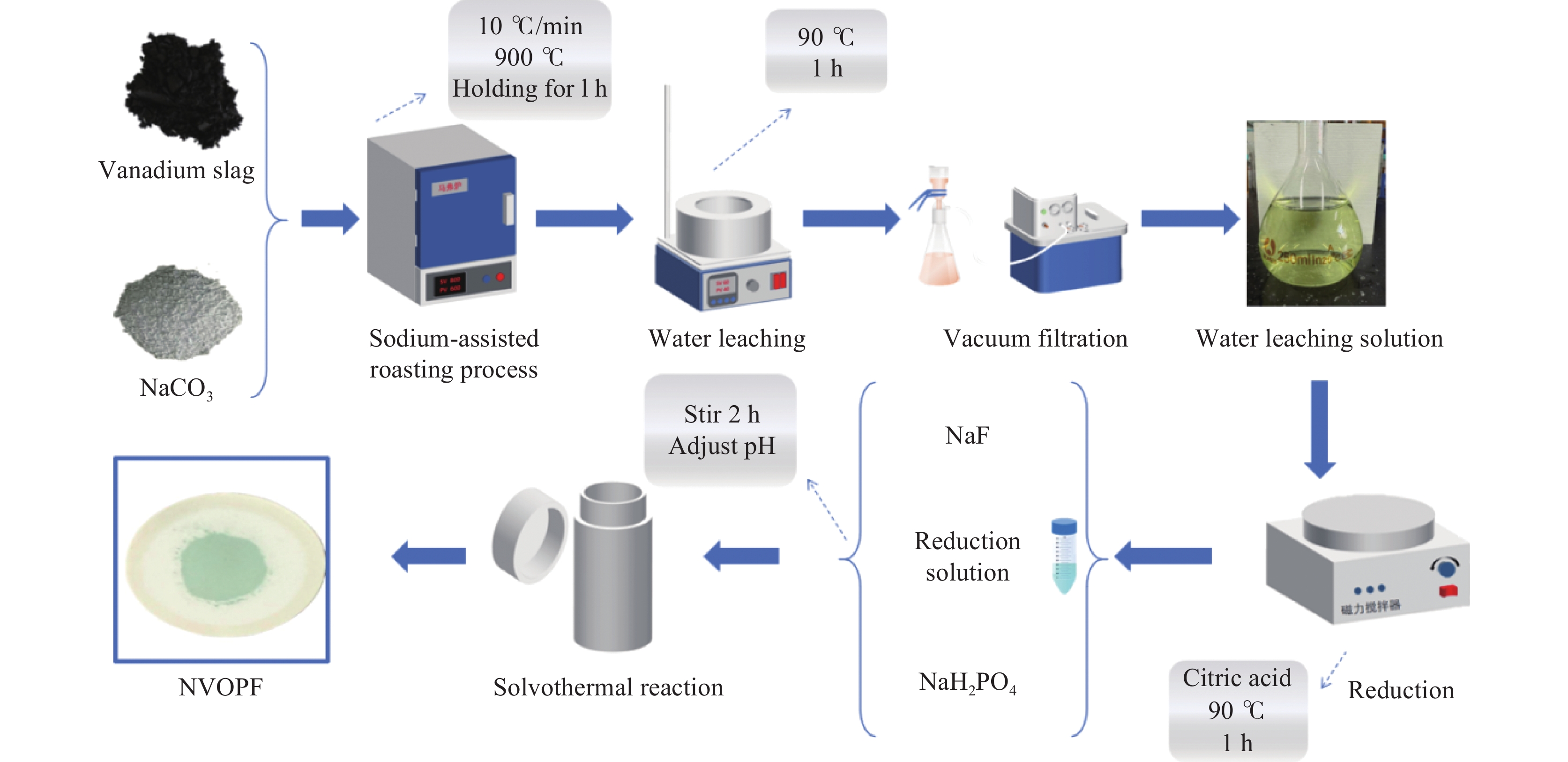 In-situ preparation of sodium vanadium fluorophosphate from sodiumized vanadium slag leaching solution and its performance study