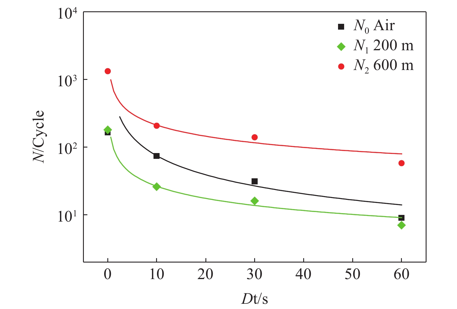 To address the unknown creep-fatigue damage mechanism of TC4 ELI titanium alloy in deep-sea multi-factor coupled environment, a high-pressure corrosion test system was used to simulate the seawater environment at 200, 600 m, and 6000 m in the South China Sea, and the cyclic stress life response and damage evolution law of TC4 ELI alloy were systematically studied. The experiment provided the cyclic stress-fatigue life data of TC4 ELI alloy under different environmental conditions. The results show that the cyclic stress-life relationship of creep-fatigue in the deep-sea environment can be characterized by the Basquin equation. The creep fatigue life with guaranteed load time is significantly reduced compared to that of pure fatigue; Under the same loading conditions, the fracture strain during the fatigue process is equivalent, and the fatigue life depends on the rate of strain increase. The stable stage of the cyclic strain-time curve shows the superimposed response of the creep rate and the plastic deformation of pure fatigue. Multiple-source crack initiations were observed on the fracture surface by Scanning Electron Microscopy, with no obvious crack propagation zone. The fatigue life is mainly the crack initiation life, indicating that the crack initiation mechanism is different in deep-sea environments and air.