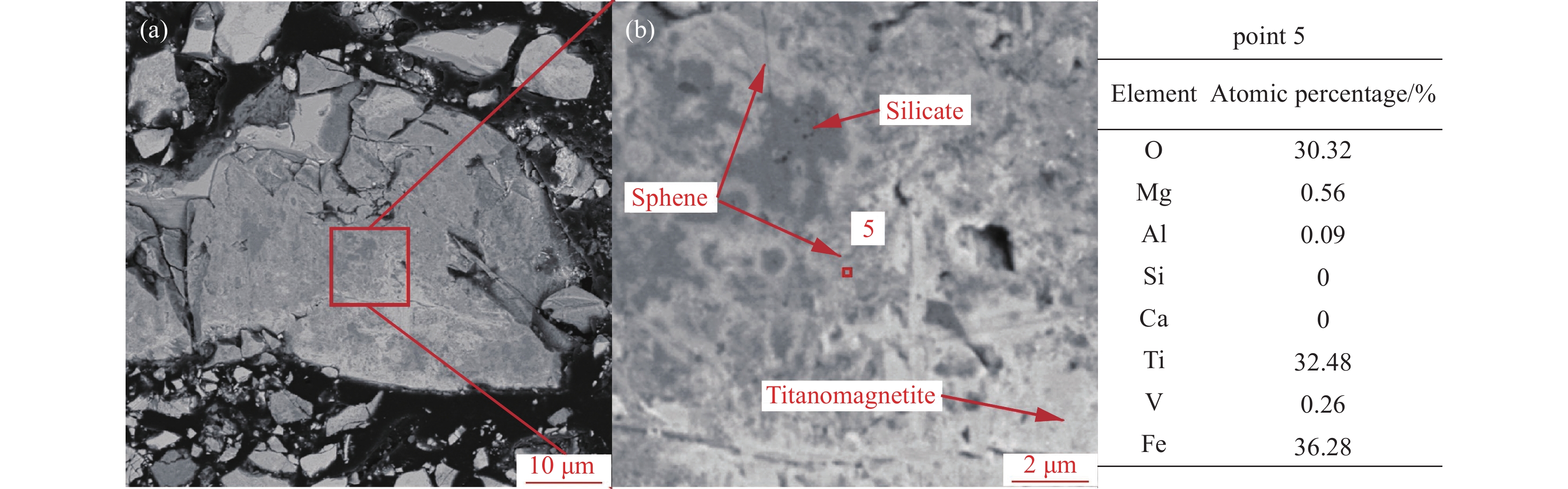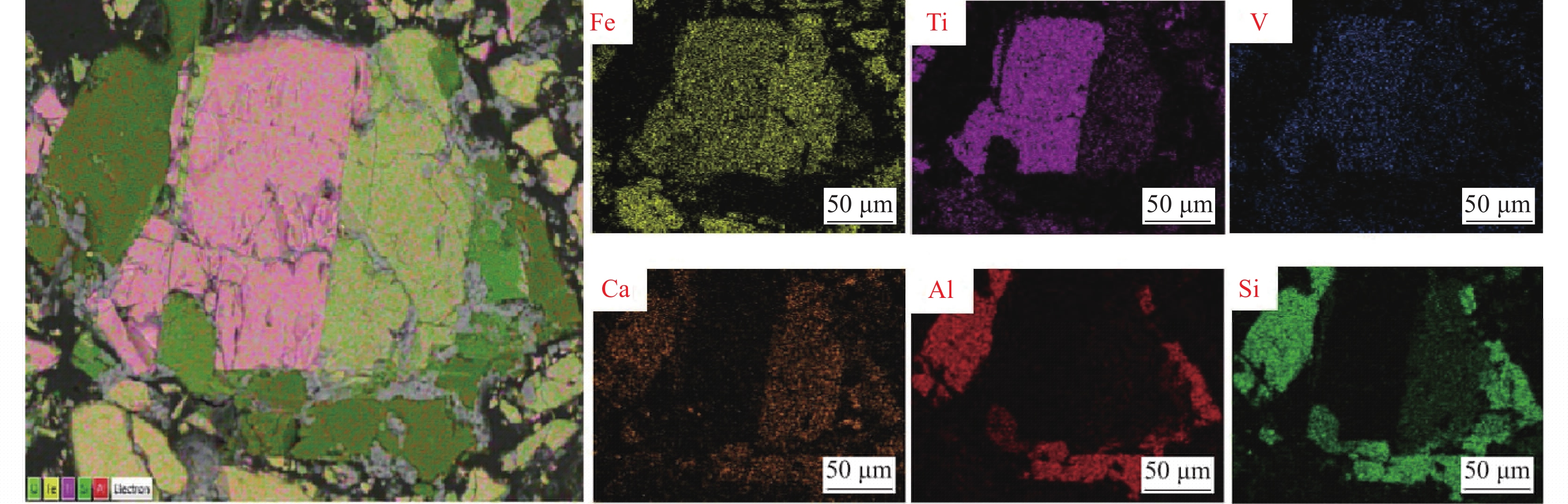 A vanadium-titanium magnetite resource has been discovered in Chaoyang, Liaoning, with the pre-selected concentrate being notable for high silicon, titanium, and vanadium content. Conducting process mineralogy research on this concentrate to explore the possibility of further silicon removal and quality enhancement is of great significance for the in-depth development and utilization of local vanadium-titanium resources. This study uses mineral processing and mineralogy research methods to identify the main minerals and their intergrowth relationships in the concentrate. The valuable minerals in the iron concentrate are mainly ilmenomagnetite, ilmenite, and a small amount of hematite. Gangue minerals are mainly silicate minerals like iron olivine and feldspar, along with a small quantity of sphene. The high vanadium and titanium content in the iron concentrate is mainly due to the presence of vanadium and titanium in ilmenomagnetite. The fine-grained gangue minerals intergrown with ilmenomagnetite lead to the high calcium and silicon content in the iron concentrate. After fine grinding and magnetic separation, the quality of the concentrate can be improved. However, due to the intimate intergrowth of fine-grained gangue minerals in ilmenomagnetite, it is difficult for conventional fine grinding and magnetic separation to fully liberate and remove the calcium and silicon elements. Therefore, even after quality improvement, the concentrate still contains 6.68% SiO2 and 3.22% CaO.